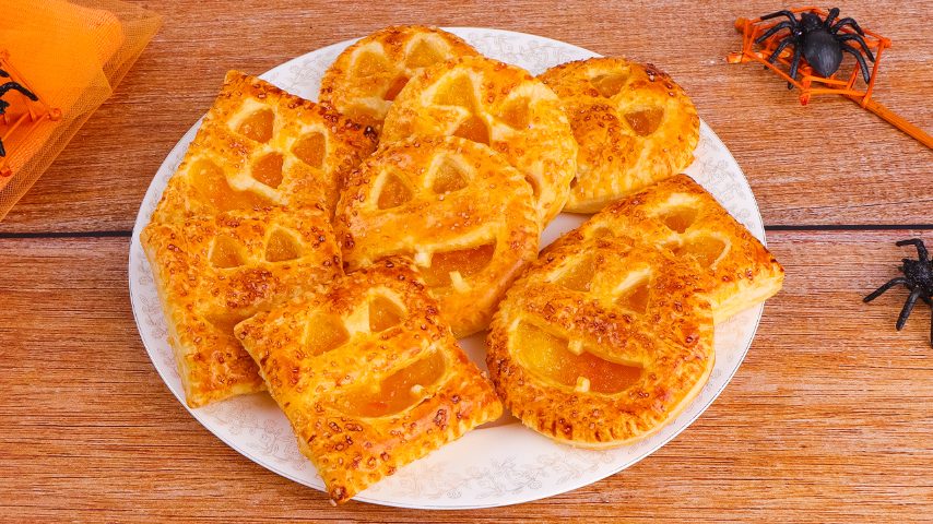 These mini puff pastry pumpkins are a playful take on hand pies, filled with orange marmalade and shaped like jack-o’-lanterns. Inspired by classic Halloween imagery and fall flavors, they combine simple ingredients with festive flair. A cousin to pop tarts or turnovers, they’re baked to golden perfection and ideal for Halloween parties, bake sales, or spooky movie nights.
