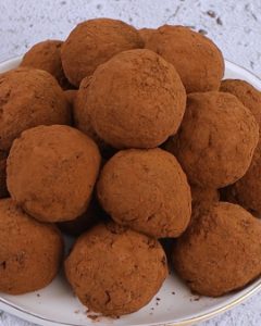 Shape the mixture into round truffles and roll them in the cocoa powder. Refrigerate them for at least 2 hours so they set up.