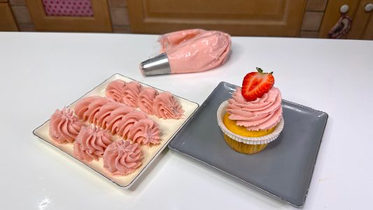 - Transfer the whipped strawberry ganache into a piping bag and use it to fill cakes, cupcakes, tarts, or pastries.