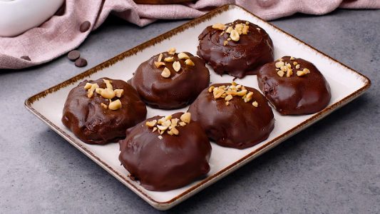Peanut butter yogurt bites are made by mixing yogurt with peanut butter and a natural sweetener, then coating the frozen bites in chocolate. They’re popular as freezer snacks because they require no cooking and set firmly without baking. The contrast between the cold, creamy center and the crisp chocolate shell is what makes them so satisfying. Variations of this recipe are often found in health-focused kitchens and quick dessert collections.