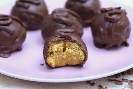 – On a hot day, you might need longer freezing times, as the peanut butter balls might soften quickly. Also allow your melted chocolate to cool down a bit before your dip the balls.