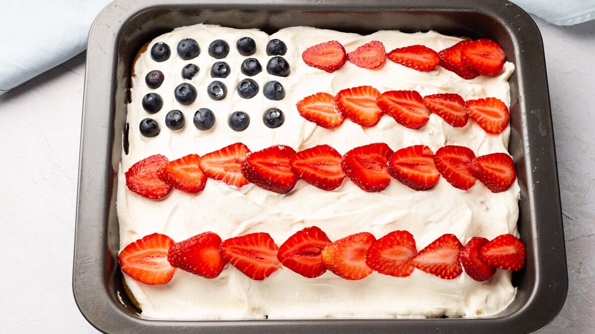 This 4th of July cake is a guaranteed hit for your Independence Day festivities. It's perfect to prepare the night before your 4th of July cookout or picnic and is a fun, tasty way to get some red, white, and blue on the table.
