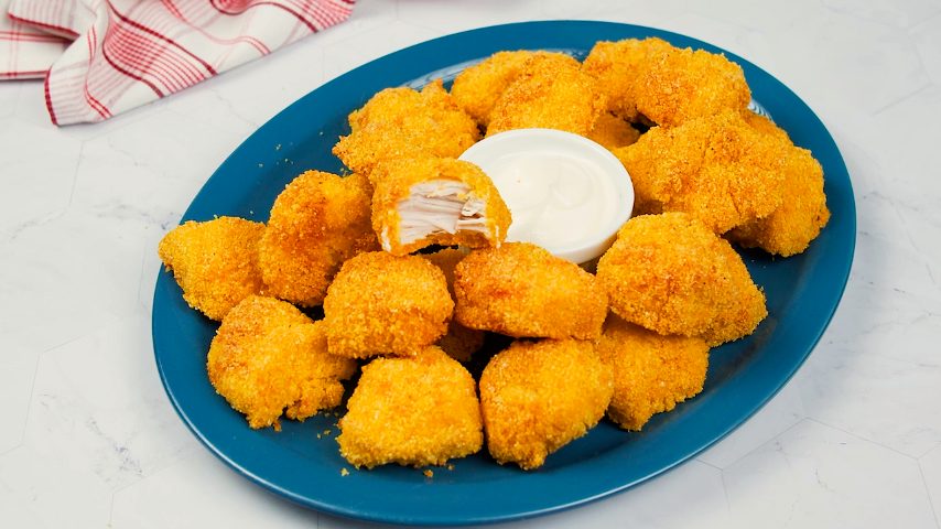 Chicken nuggets are breaded chicken chunks that are often served in fast food restaurants or sold as frozen products in the grocery store. However, you can also make them at home. Often, chicken nuggets comprise white meat and a breading such as fine breadcrumbs, panko breadcrumbs, or even cornflakes. This version uses cornmeal which has a slightly sweet flavor and gives the chicken nuggets the best crunchy coating.