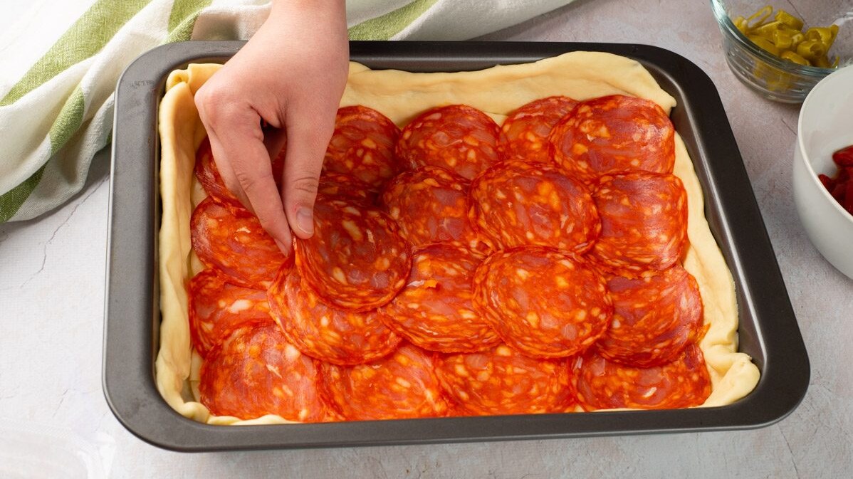 Use a 9×13-inch baking tray to make your antipasto squares.