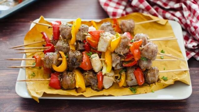 In our recipe we used beef, chicken and pork, alternating with pieces of bell peppers, to make them more delicious and colorful. If you like, you can prepare them only with meat or add other vegetables, such as zucchini, eggplants, cherry tomatoes or onions.