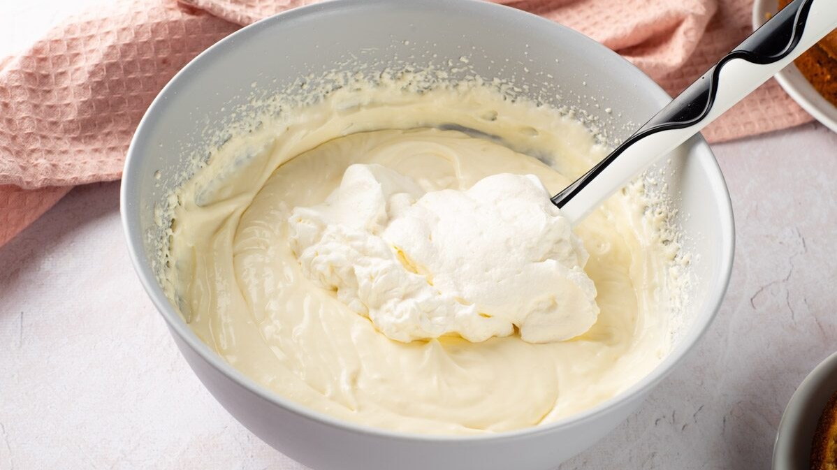 In a second bowl, whisk cream and vanilla to form stiff peaks. Fold the whipped cream into the cream cheese mixture.