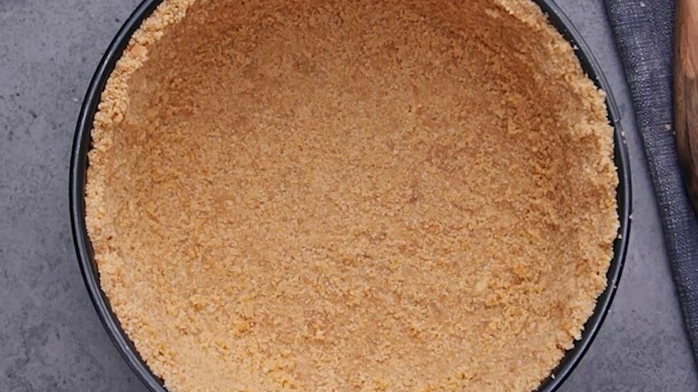 Transfer the crumbs to an 8-inch baking tin and press to form a base.