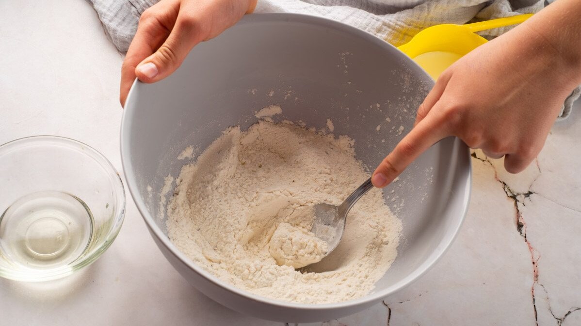 Stir until a dough forms. If your dumpling dough is too dry, add more milk, a teaspoon at a time, until the dough is cohesive.
