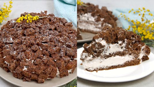 Chocolate Mimosa Cake is one of those desserts that looks intricate but feels surprisingly light on the palate. Light sponge layers are brushed with orange syrup, filled with whipped hazelnut cream, and covered with tiny cubes of cake that resemble blooming mimosa petals. It’s great served during festivities or a night in when you want something sweet.