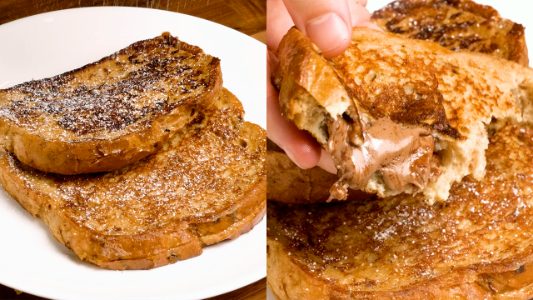 Molten chocolate hides inside a crisp shell, so that every bite of this Chocolate-Stuffed French Toast gives you warm chocolate in a single, snack-sized package. The custardy egg-and-milk soak creates a tender interior while the pan-fry builds a caramelized exterior that gives way to that irresistible chocolate centre.