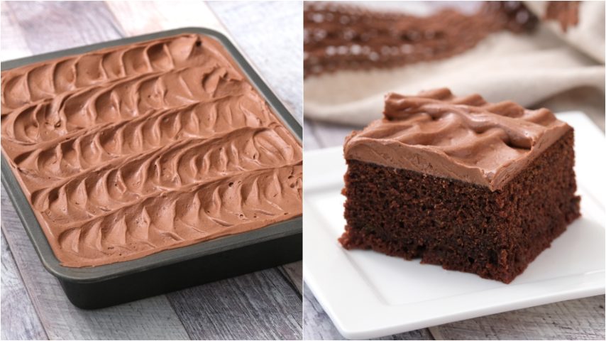 The easiest part is making the batter and baking the cake. You’ll simply combine the wet ingredients in one bowl, the dry ingredients in a separate bowl, combine the two, and bake! If you like, top your treat with homemade whipped cream frosting.