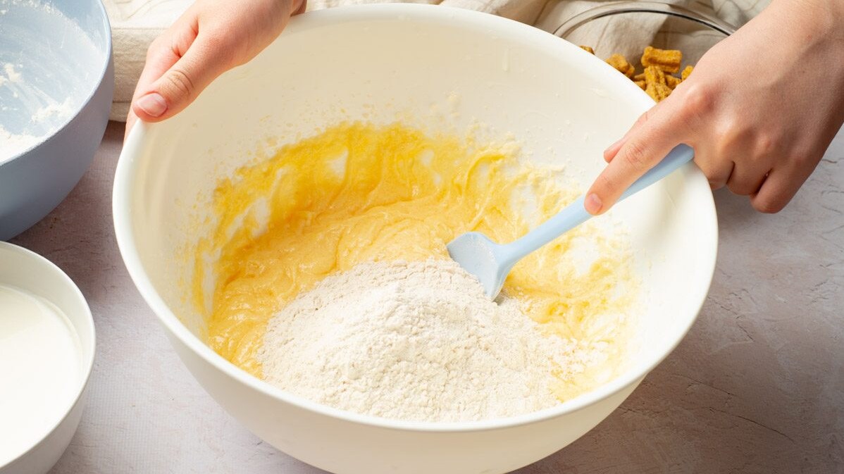 Mix the batter but not too much. This will make your cake dense instead of fluffy.