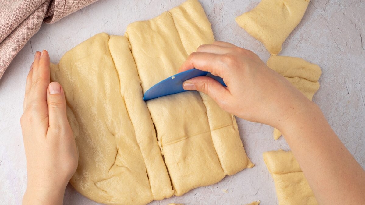 To shape the rolls, turn the dough out onto a work surface. Slice the dough into 12 equal portions, then cut each portion into 3 smaller equal-sized pieces. Roll each of the 3 pieces into a ball, then place the balls of dough into the well of a greased muffin tin. Lightly cover the dough with an oiled piece of cling film, then let it rise for another 30 to 45 minutes.