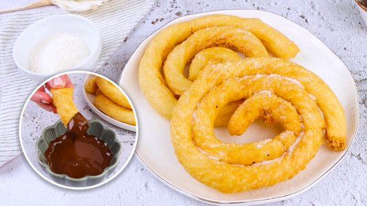 Churros are noteworthy for their crisp texture and tender insides, but for a unique take, you can try this churro roll recipe which results in a different shape. Commonly, churros are fried as long sticks whereas this version is a spiral shape. They make a wonderful snack or dessert when served with a caramel or chocolate dipping sauce.