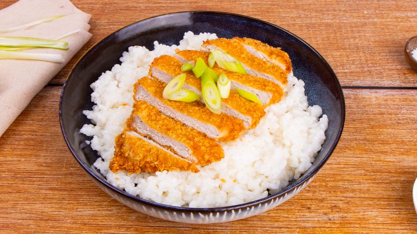 Classic katsudon includes an egg-onion broth topping. This simplified version can be served with tonkatsu sauce or soy sauce if desired.