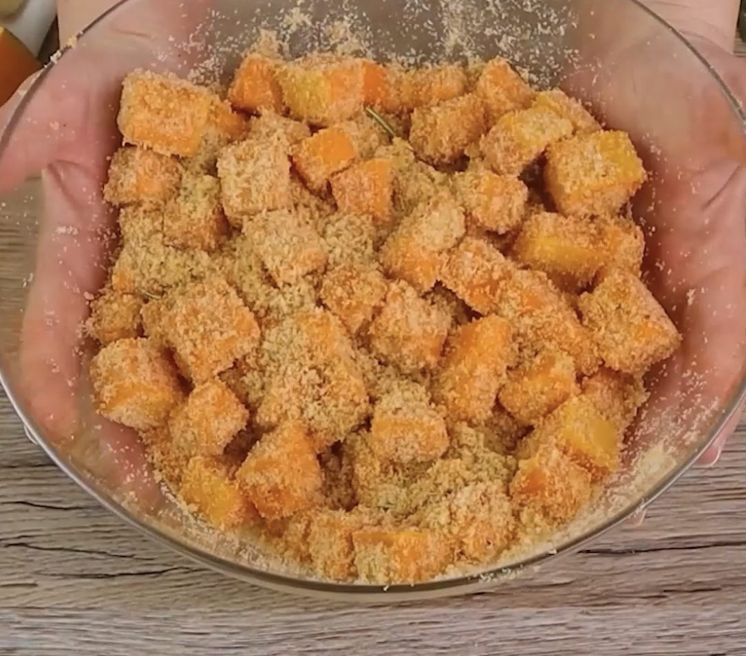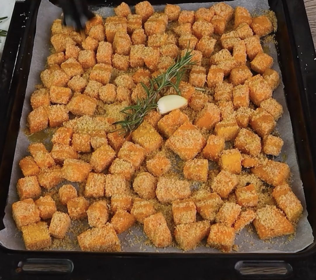 Crumbed pumpkin is a baked vegetable dish where pumpkin slices or cubes are coated with seasoned breadcrumbs and cheese, then roasted until golden and crispy. It’s similar in technique to classic breadcrumb-coated favorites like chicken cutlets or eggplant Parmesan, but this version highlights the natural sweetness of pumpkin. While not traditional, it draws inspiration from Italian flavors, making it a cozy and rustic comfort food.