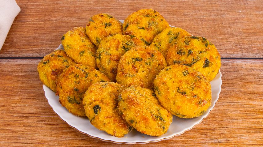 Spinach and Potato Patties are oven-baked patties made from mashed potatoes, sautéed spinach, diced ham, and cheese. Rolled in breadcrumbs for a golden crust, they’re shaped into small flattened balls and baked until crispy. These are a staple in many European households, often served warm as a vegetarian-friendly snack or a fun, kid-approved side dish—though you can omit the ham for a completely vegetarian version.