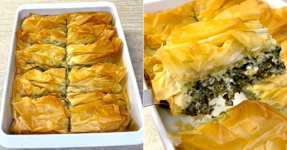 With crispy layers of phyllo pastry and a filling of spinach and feta, you will love this easy spanakopita recipe. It is a wonderful Greek dish that also happens to be suitable for vegetarian diets.