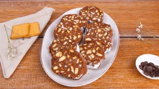 Chill the chocolate salami in the fridge for at least 2 hours.