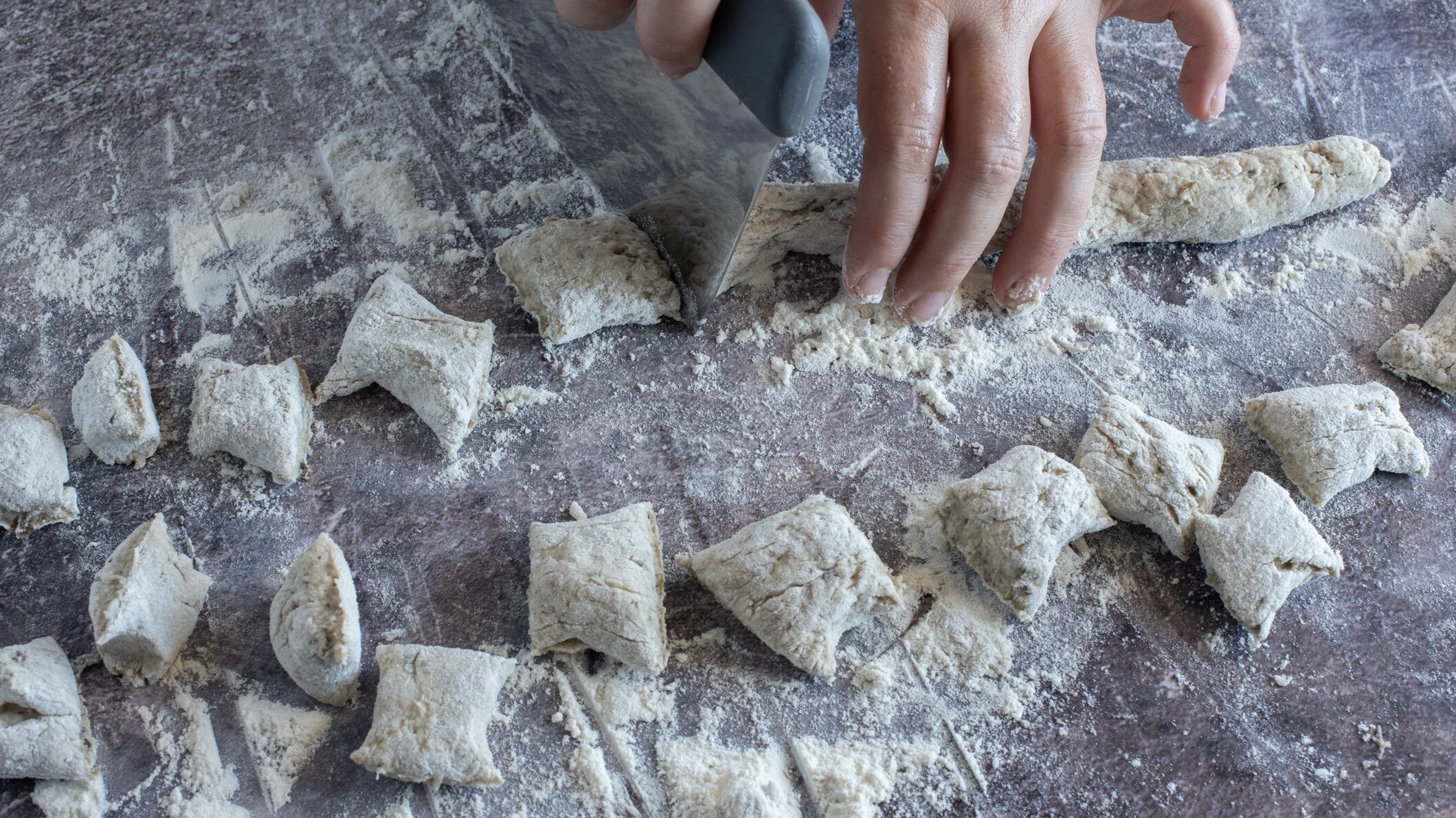With well floured hands, form long sausages and, with the help of a tarot, cut each of the gnocchi of about 2 cm 5.
