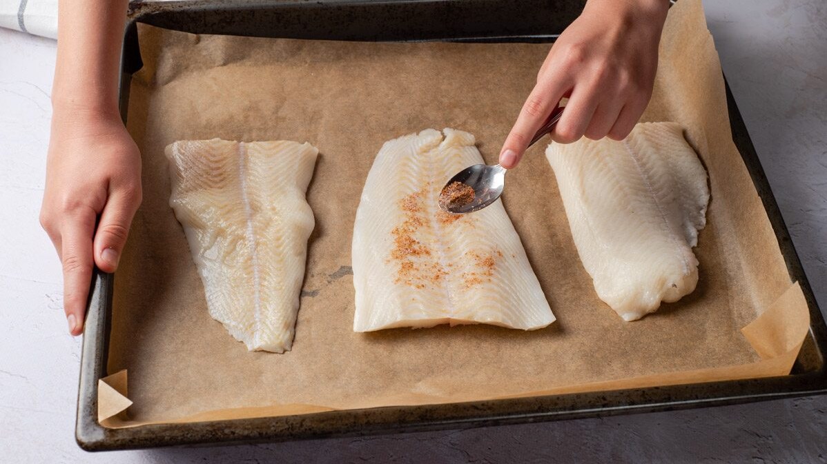 Arrange the fish on the baking tray and season it on both sides with the spice mix.