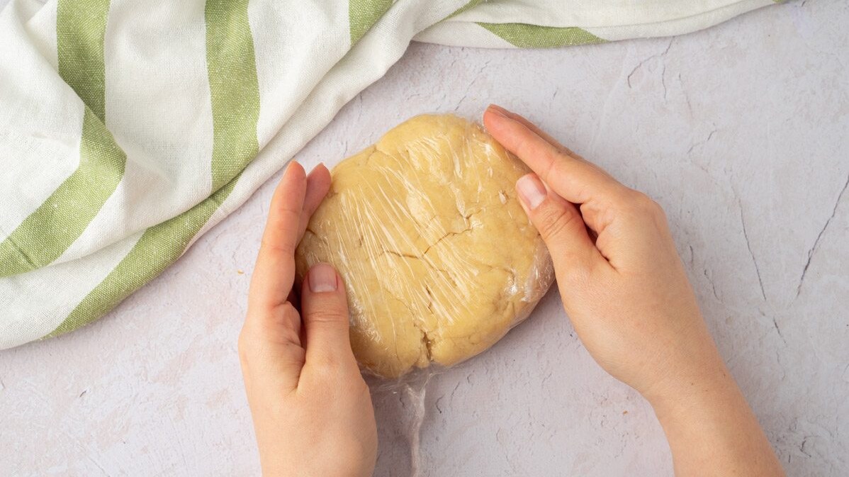 Turn the dough out and roll it into a disc. Wrap it in cling film and refrigerate for at least 1 hour.
