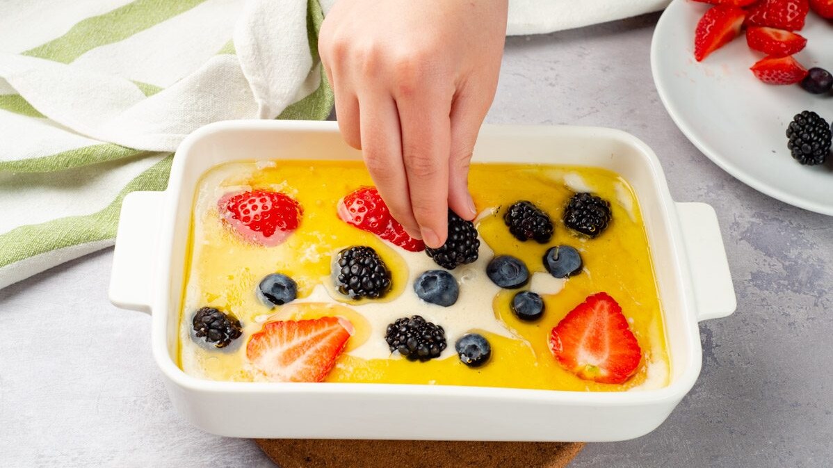 Use an 8×8-inch baking pan to make your fruit cobbler.