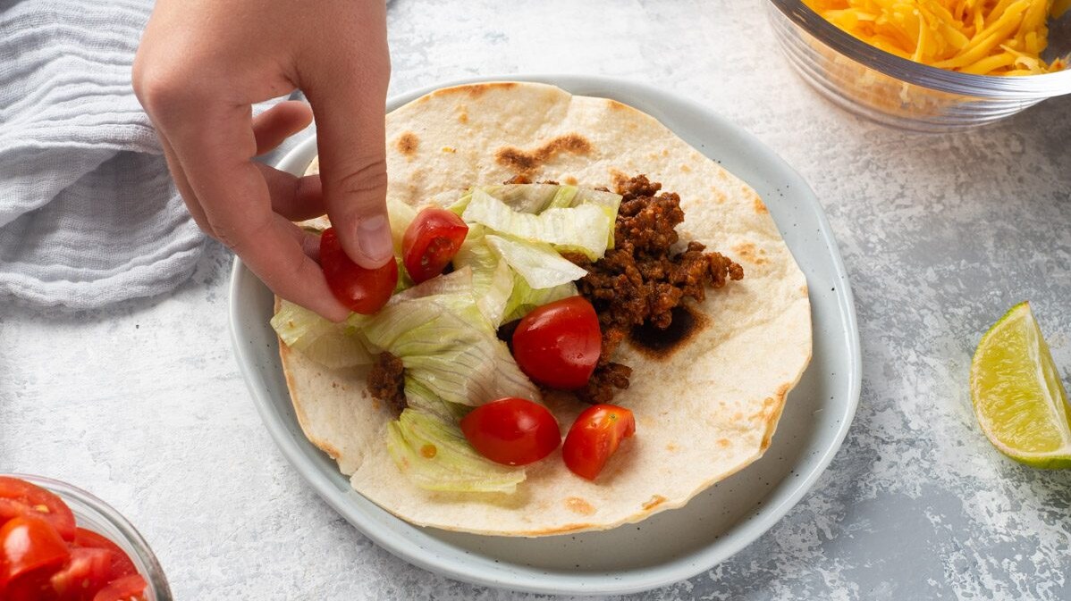 Extra-lean ground beef is ideal for tacos. Opt for a 90/10 ratio. An 80/20 ratio would work, too. You'll need about one pound of ground beef, which yields about eight servings, depending on what else you put in the tacos.