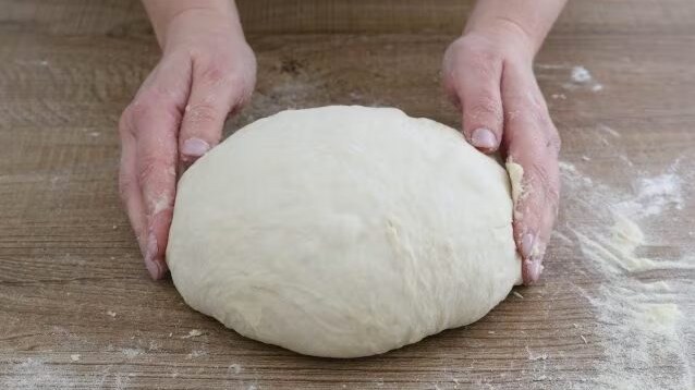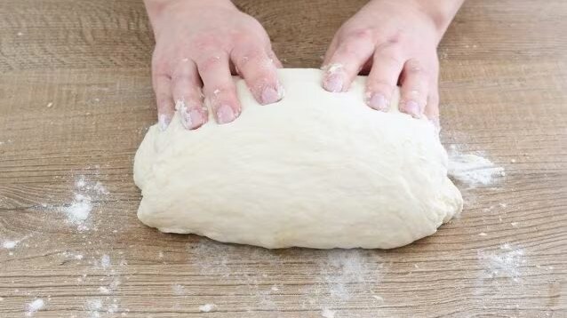 Gently flatten the dough, spreading it out as if to form a rectangle.