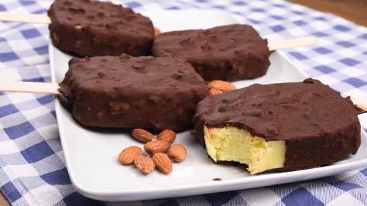 – To make a “Magnum dark”, add 2 tablespoons cocoa powder to the ice cream mixture and dip in dark chocolate.