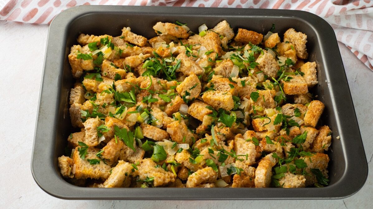 Add sausage, bacon, dried fruit, nuts, seeds, cured meats, oysters, or extra veggies to put a delicious spin on this classic stuffing recipe.