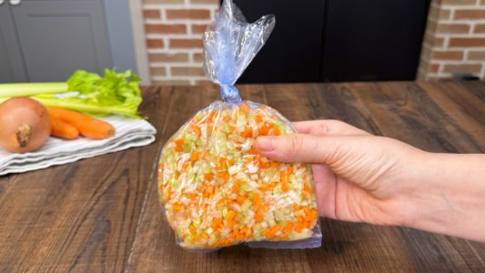 Freeze in small portions so you can take only what you need. Always return unused soffritto to the freezer immediately to prevent thawing.