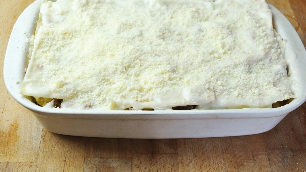 Continue to make the layers until all the ingredients are used up, finishing with béchamel and grated parmesan cheese. Bake at 160 degrees C and cook for about an hour 10.