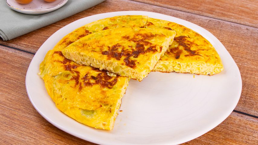 Heat a bit of olive oil in the pan over medium heat. Pour in the leek-egg mixture and cook, covered, over low heat for about 8 minutes, or until the edges begin to set.