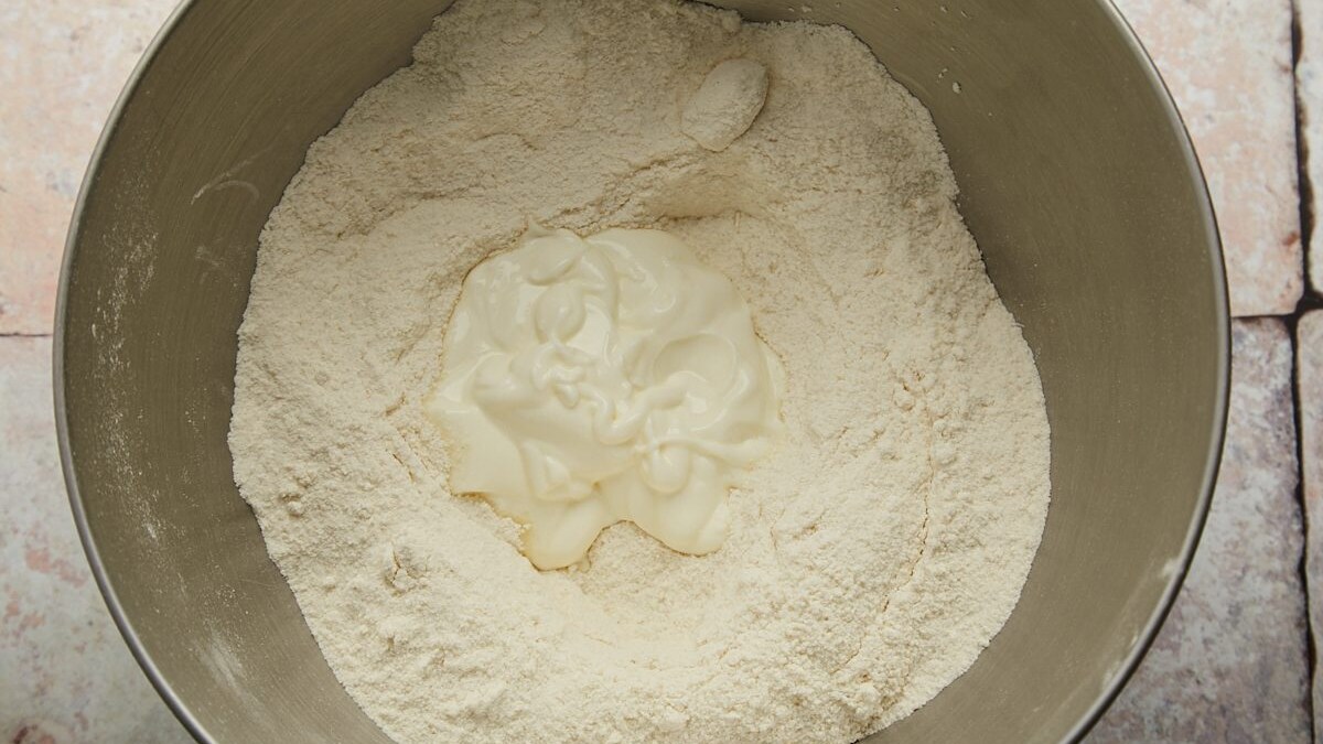 Make a well in the center of the dry ingredients, and add the yogurt, limoncello, lemon zest, lemon juice, melted butter and eggs.