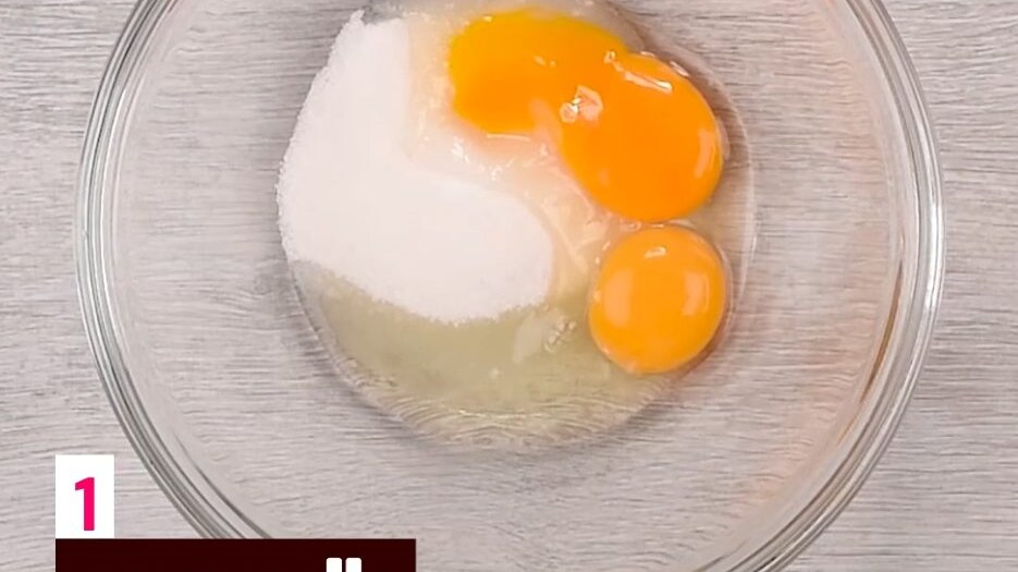 In a mixing bowl, beat the eggs with sugar, salt, and oil.