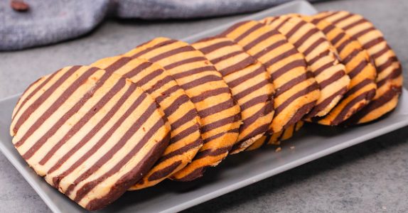 Zebra cookies are meant to be tender and crumbly rather than crisp. They should snap gently when broken, but melt quickly once you bite into them. Overbaking will make them dry and hard, so it’s best to remove them as soon as they’re set.