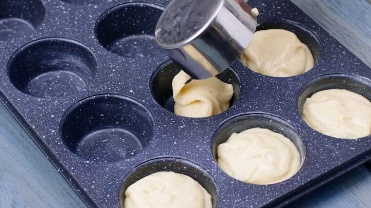 Beat the mixture until the batter is smooth. Transfer the batter to the muffin holes.