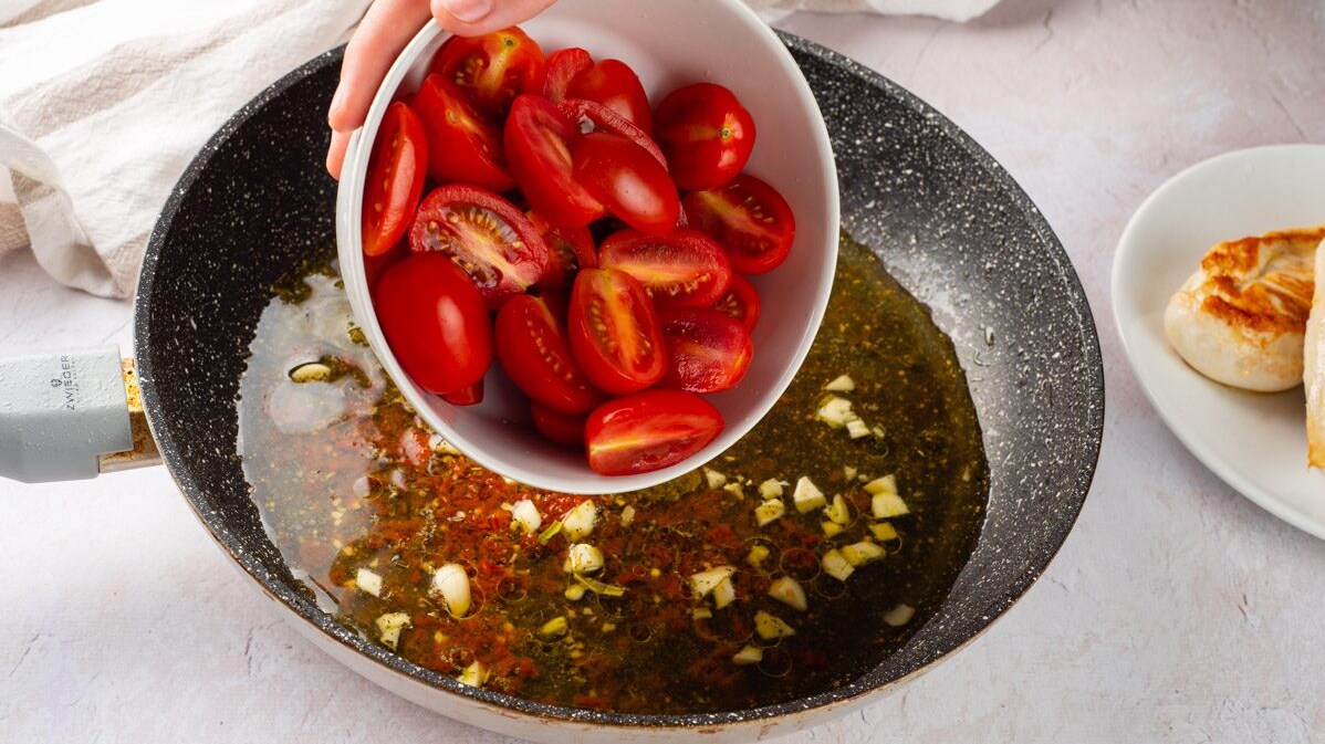 If you don't have cherry tomatoes, use plum tomatoes or chop up a larger tomato.
