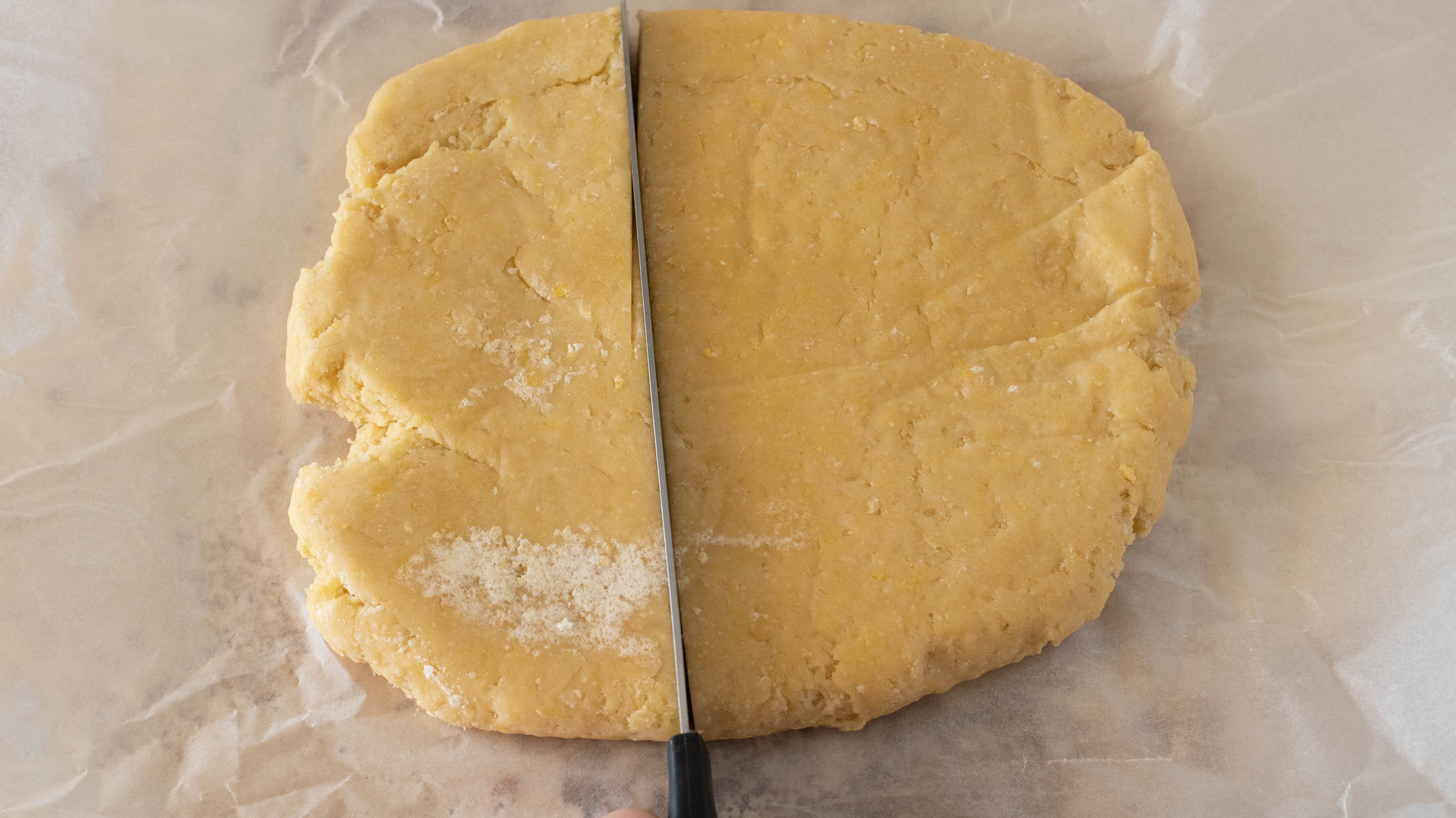 After this time, take the dough back and divide it in two; one part must be larger than the other.