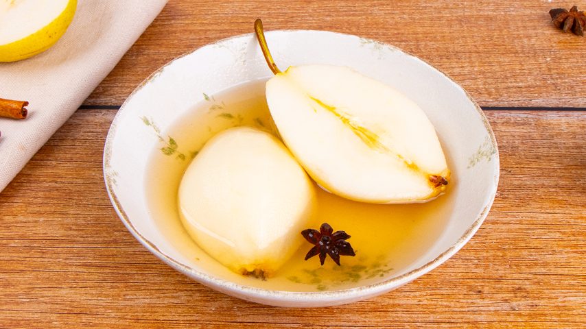 - Choose ripe but firm pears: Williams (or Bartlett) pears hold their shape well when cooked.