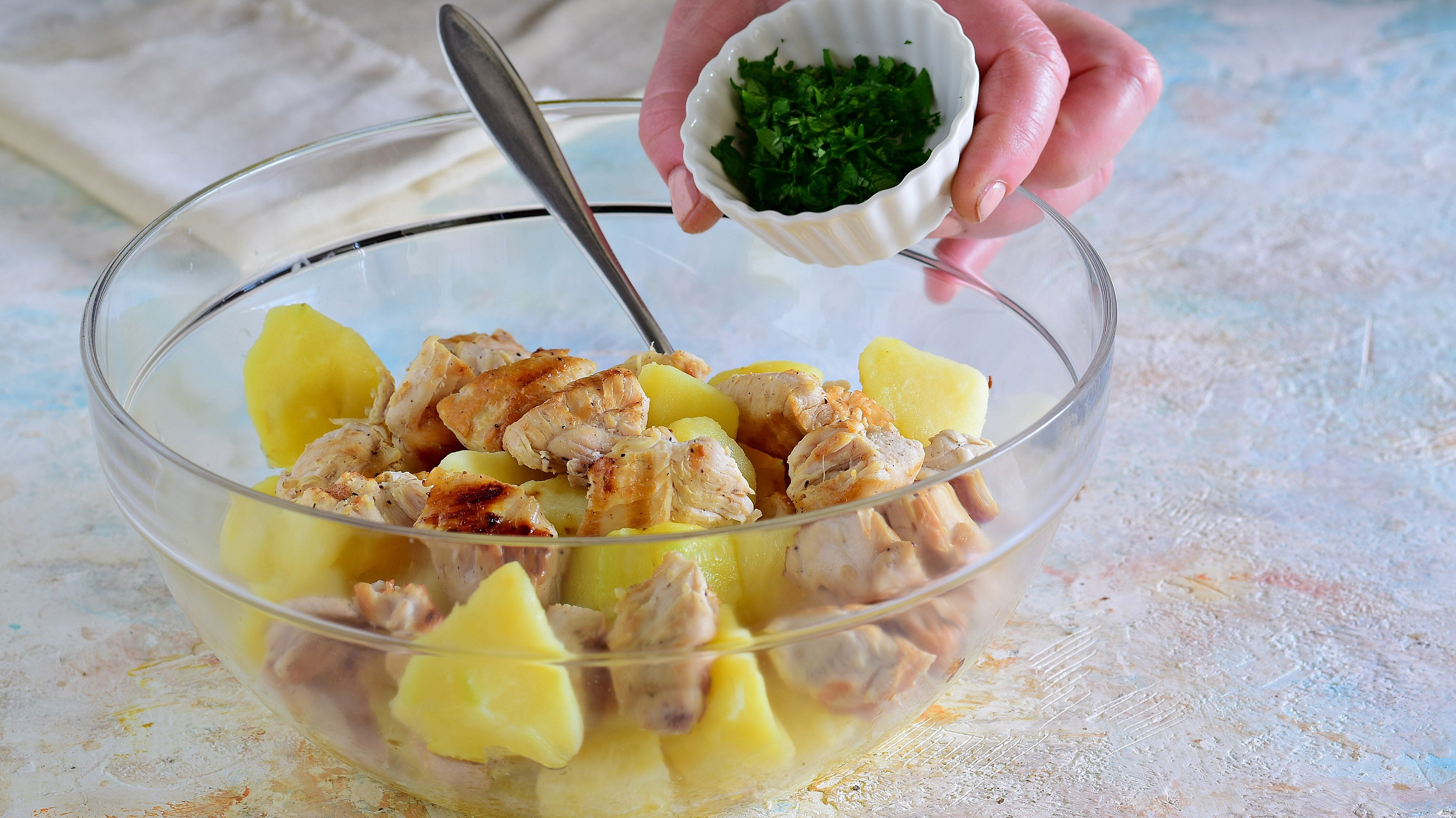 To bring it to the table, you will need boiled potatoes, a whole chicken breast, ready-made mayonnaise and a sprig of fresh parsley. Once you have cut the meat into bite-sized pieces and marinated it in a bowl with oil, salt and pepper for at least a quarter of an hour, all you have to do is grill it on a hot griddle and then season it in a salad bowl with the diced boiled potatoes, chopped parsley and a few spoonfuls of mayonnaise. The result will be a very tasty dish, to be left to rest in the fridge and then consumed in the office, for a quick but satisfying break, or on the beach under the umbrella.