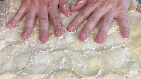 Rinse the potato slices in cold water to remove excess starch.