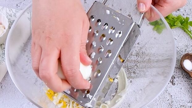 Add the surimi, olive oil tuna fillets, green olives pieces, and mayonnaise and mix all together well with a spatula.