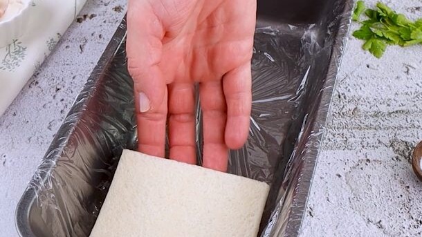 The fillings vary, depending on taste. Some additions include liver pate, olive tapenade, cooked shrimp, chopped ham, caviar, tomato, cucumber, cheese, or of course, smoked salmon. It can be made in different shapes too. Some prefer to make it in a round cake tin, but the square and rectangular shapes are still the most popular.