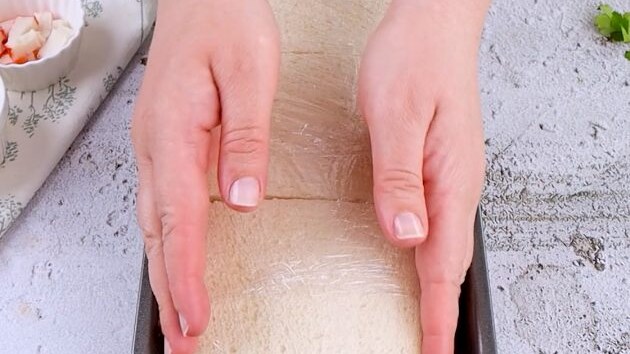 Cover the sandwich cake with the edges of the cling film and wrap it tightly. Refrigerate for one hour.