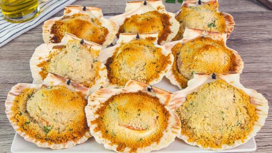 Scallop gratin is a popular baked scallop recipe where fresh scallops are layered with a creamy base — often béchamel sauce — and finished with a breadcrumb and cheese topping. Once baked, the surface becomes golden and crisp while the scallops remain tender and juicy underneath.
