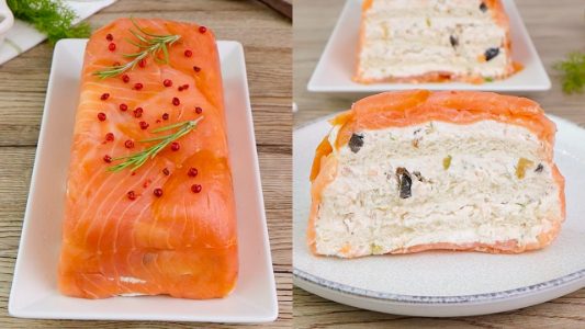 A smoked salmon log is a cold, layered appetizer traditionally prepared in a loaf or cake mold and chilled until firm. Popular in France and Italy, it combines smoked salmon with a creamy filling, often enriched with herbs, cheese, or seafood. This dish dates back centuries as a way to present layered foods in an elegant and sliceable form.