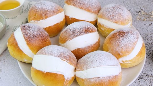 This maritozzi recipe will allow you to have a classic Italian dessert in the comfort of your home. They are fluffy buns filled with a delicious cream. With a yeast-based dough, the buns have a wonderful rich flavor and fluffy texture.