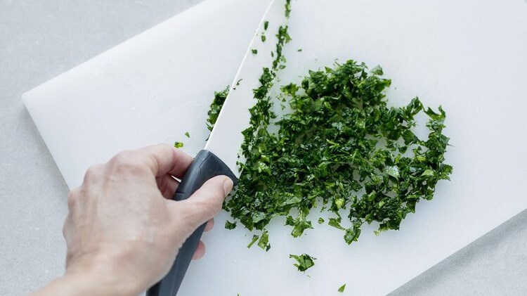 Grate the stale bread, transfer it to a bowl and add the parsley.